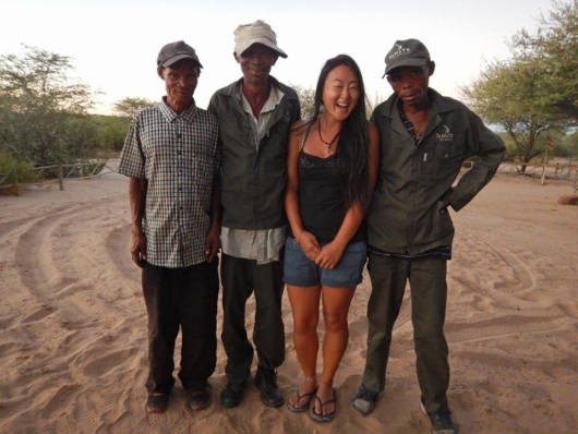 浪江)余談ですが、サファリでカラハリ砂漠に住む狩猟採集民族・サン族に動物の生態系について教えてもらったりもしましたね。彼らは「地球最古の人類」と呼ばれていて、人類の祖先とされているなんて言われていて!舌打ちをするようにして発音されるクリック音を使った言語を使う、なんとも面白い民族で。この植物を煮た水を飲むと頭痛が治るとか、この植物を潰して水と混ぜて飲むと妊娠しない、とか、自然と共存するこのサン族の方々とのお話は本当に興味深かったです。