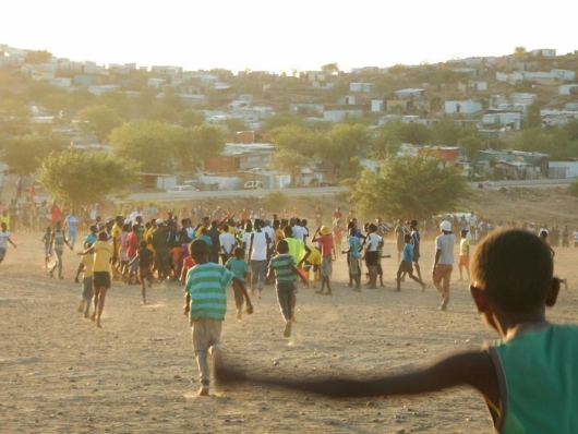 この優勝が決まる前、ある若者から「日本っていいよね。ナミビアに生まれたから、欲しいものも、働く場所も、夢もすぐにかなえられない。」と言われたんです。その若者は、優勝が決まった瞬間に、優勝チームに向かって走っていってしまいましたが、特に厭味ったらしく言ったのではなく、笑顔を浮かべながら「だから日本に行ってみたいなぁ」と言われました。「生まれ育った場所と他を比較する良さと悪さ、生まれ育った場所を悔やむ現実、そして生まれ育った場所によって運命も人生も異なってしまうのか?」と、一人深く考えさせられていたのです。そんなことをふと考えていた矢先にゲームの勝敗がついて。この写真はそんな時に撮った一枚です。生まれた場所を悔やんでいるかもしれない人々が住むスラム街の前には「サッカーというフェアなスポーツの結果に喜び、楽しむ人々で溢れている」そんなギャップがこの一枚には収められている気がします。子供に限らず大人も大きな夢を持っている人が多いナミビアですが、その可能性を狭めている色んな障壁があるのか、と何故かしんみり考えてしまい。それからでしょうか…この人たちに雇用を生み出す仕事をしたいなって思ったりしたのは。