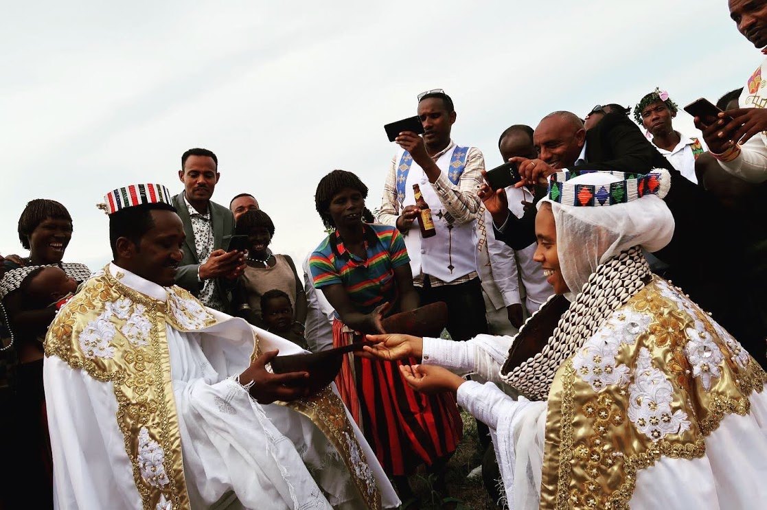 写真:少数民族の人たちの祝い方とエチオピア正教会の祝い方を両方やっている友人の結婚式
