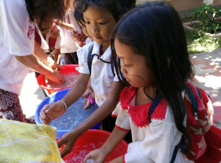 後藤)手洗い教育をした時に、水道が近くにないから、桶に水を汲んでその水で手洗いをしたの。そしたらその桶の水がありえないくらい濁ったのね。泥とか土を触った後は汚れるかもしれないけど、汚れがすごく目に見えて、解決しなきゃいけない問題だなと思ったし、こんなに汚れがついている手で食べ物を食べたら、子どもの体に悪いっていうのがすごくわかったし、だからこそ今も続けなきゃいけないって感じた瞬間かな。